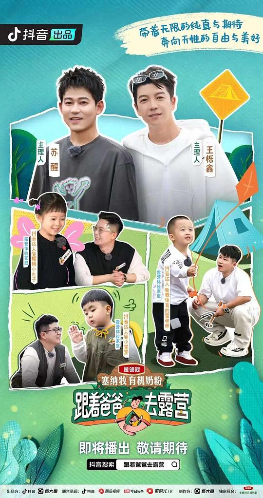 由抖音出品的户外潮流亲子露营真人秀《跟着爸爸去露营》即将上线。节目由苏醒与王栎鑫两位主理人负责营地的全方位运营,为三组家庭提供最全能的惊喜式魅力服务。在与萌娃亲密接触的过程中,他们还将与三组家庭共同体...